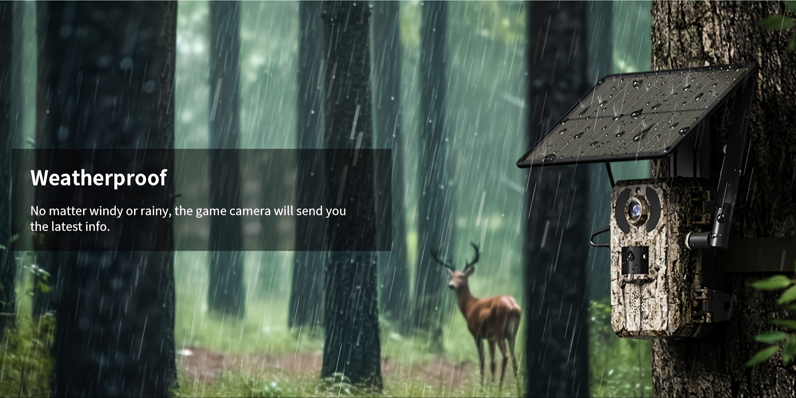 Forget hauling batteries into the woods. The built-in solar panel keeps your camera charged all year round, backed by a high-capacity lithium battery. It’s eco-friendly, cost-saving, and virtually maintenance-free.