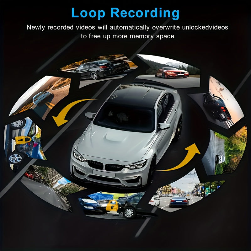 No worries — the camera uses loop recording to overwrite the oldest footage automatically. Critical clips (accidents, sudden stops) are auto-locked by the G-sensor so they can’t be erased.