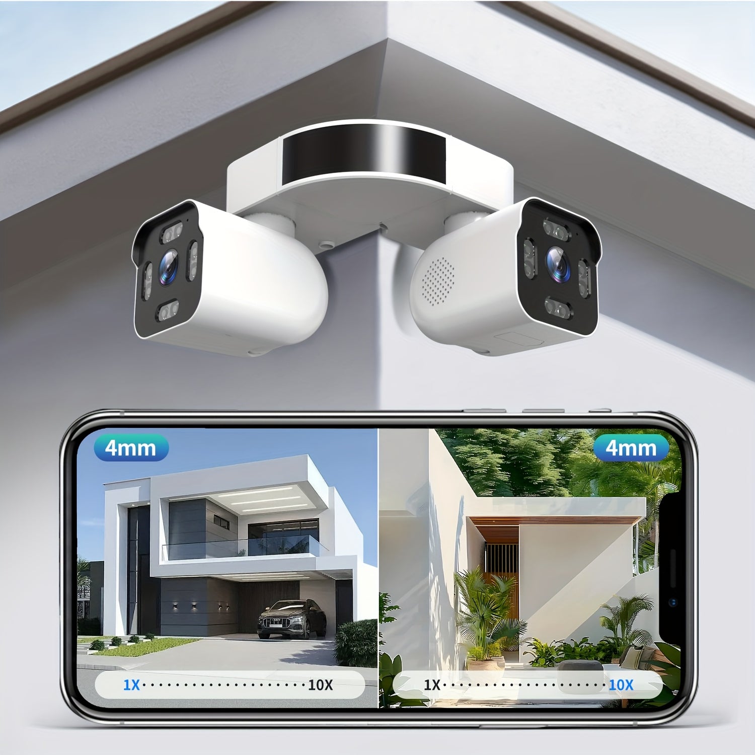 - Dual lenses + PTZ rotation (wide view + zoom simultaneously)