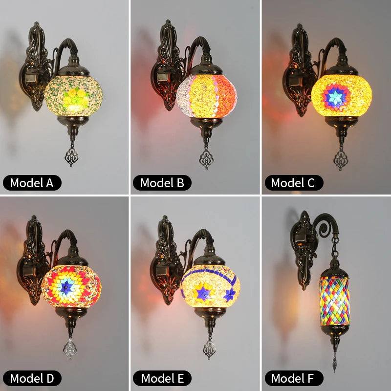 Add a touch of vintage charm with this Bohemian mosaic glass wall lamp. Perfect for indoor décor, it creates warm, colorful lighting for bedrooms, hallways, or bars.