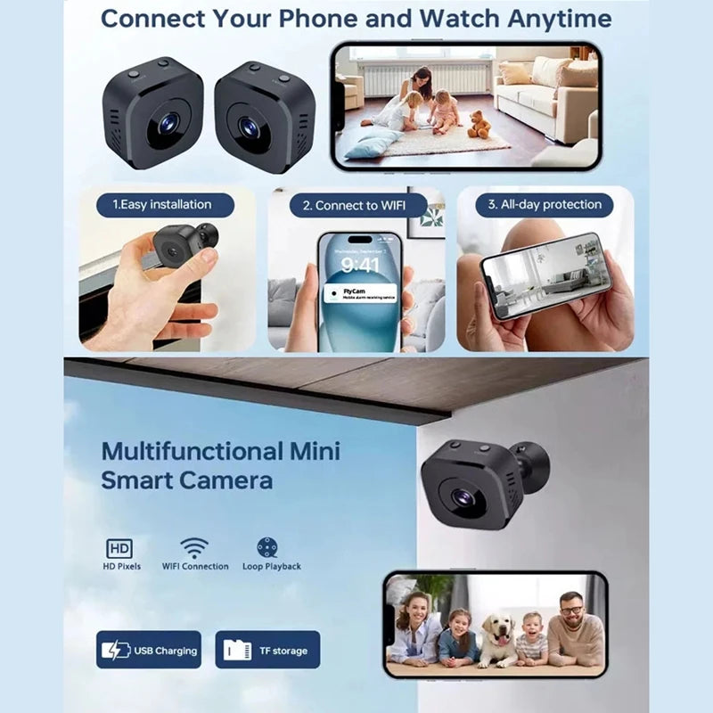 This mini WiFi camera is compact and easy to place in many spaces. It supports high-resolution video, night viewing, and app-based access for everyday monitoring.